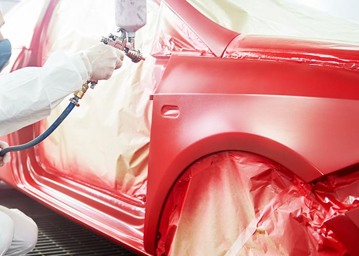 多角型分光測色機とコンピューターによる調色を行い、職人の目と科学的分析で新車と違和感のない色を再現します。